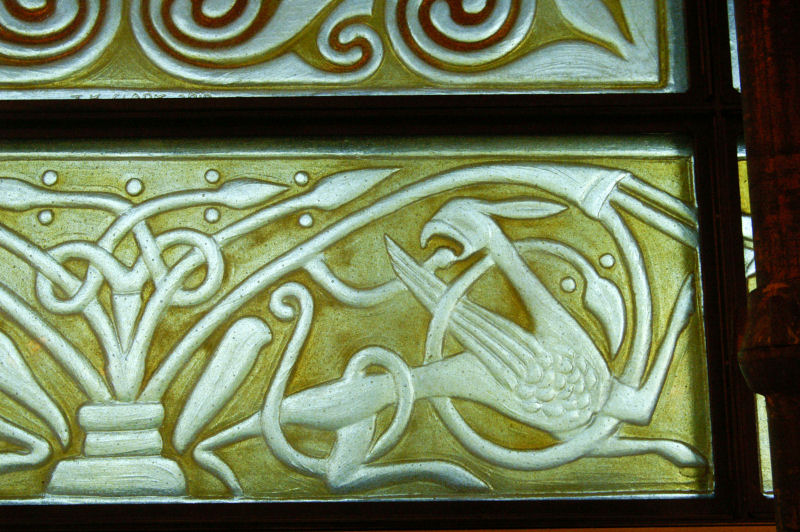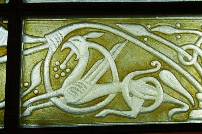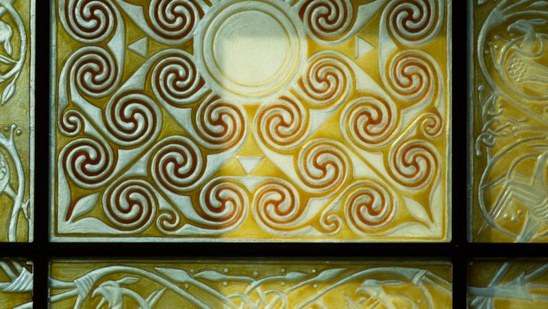 The theme of the window was to be the signet used by Glenmorangie. This in turn is derived from the Hilton of Cadboll pictish stone.