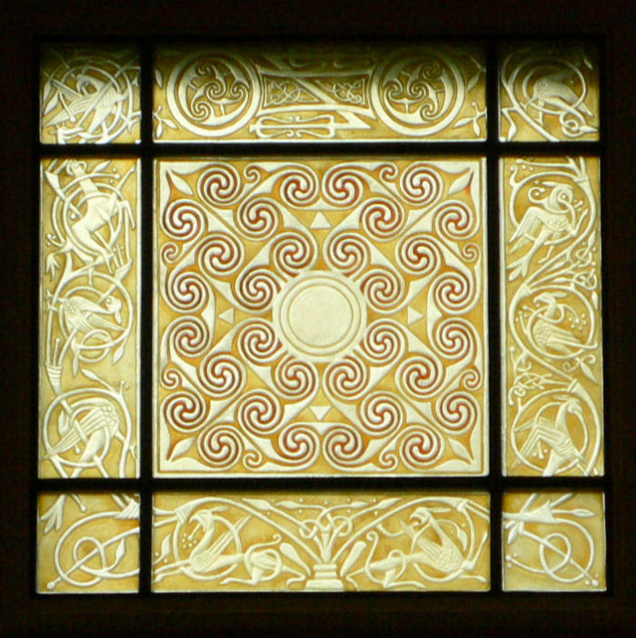 The stone is a relief sculpture, so it seemed appropriate that the window should be too. I explored other artistic and technical possibilities but the relief was the best solution.
