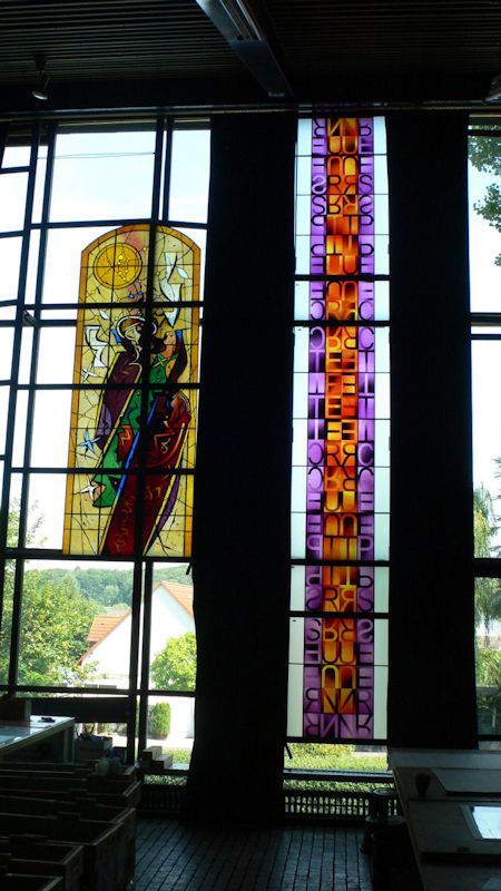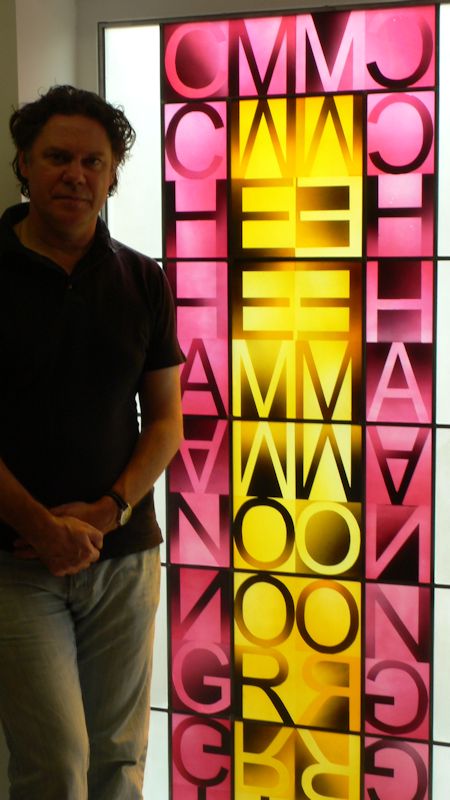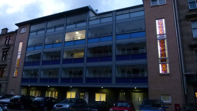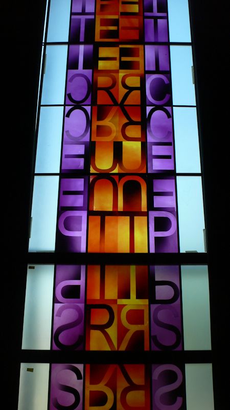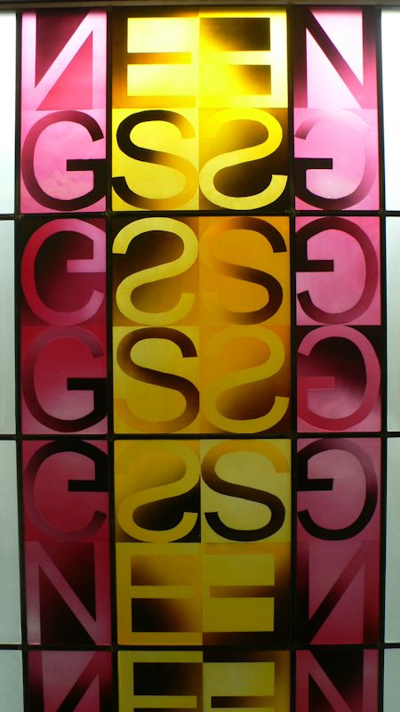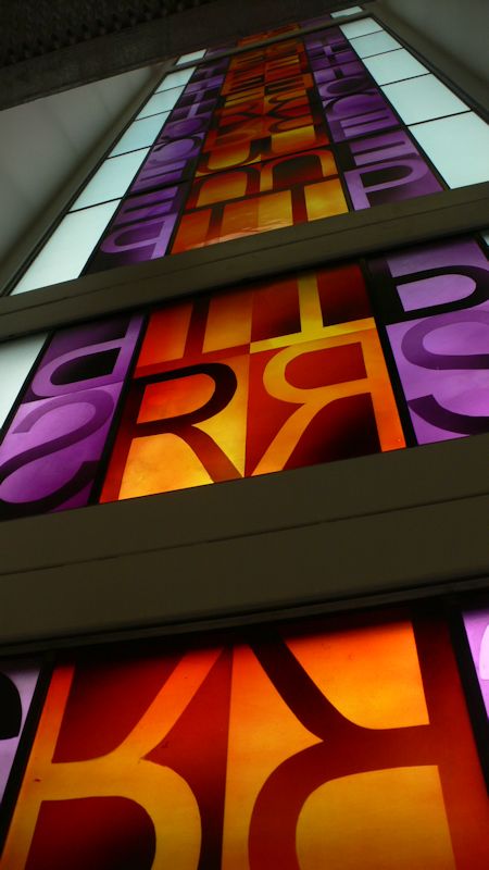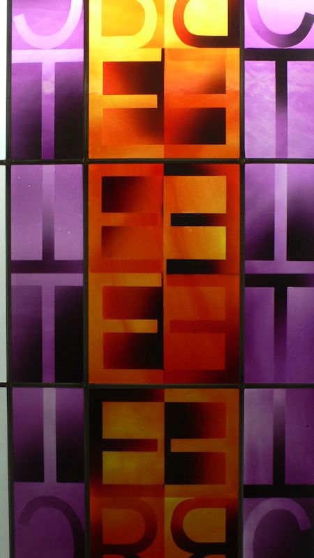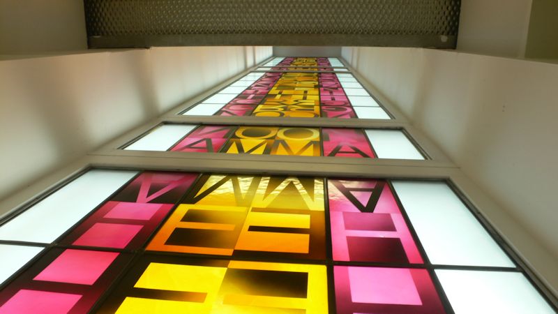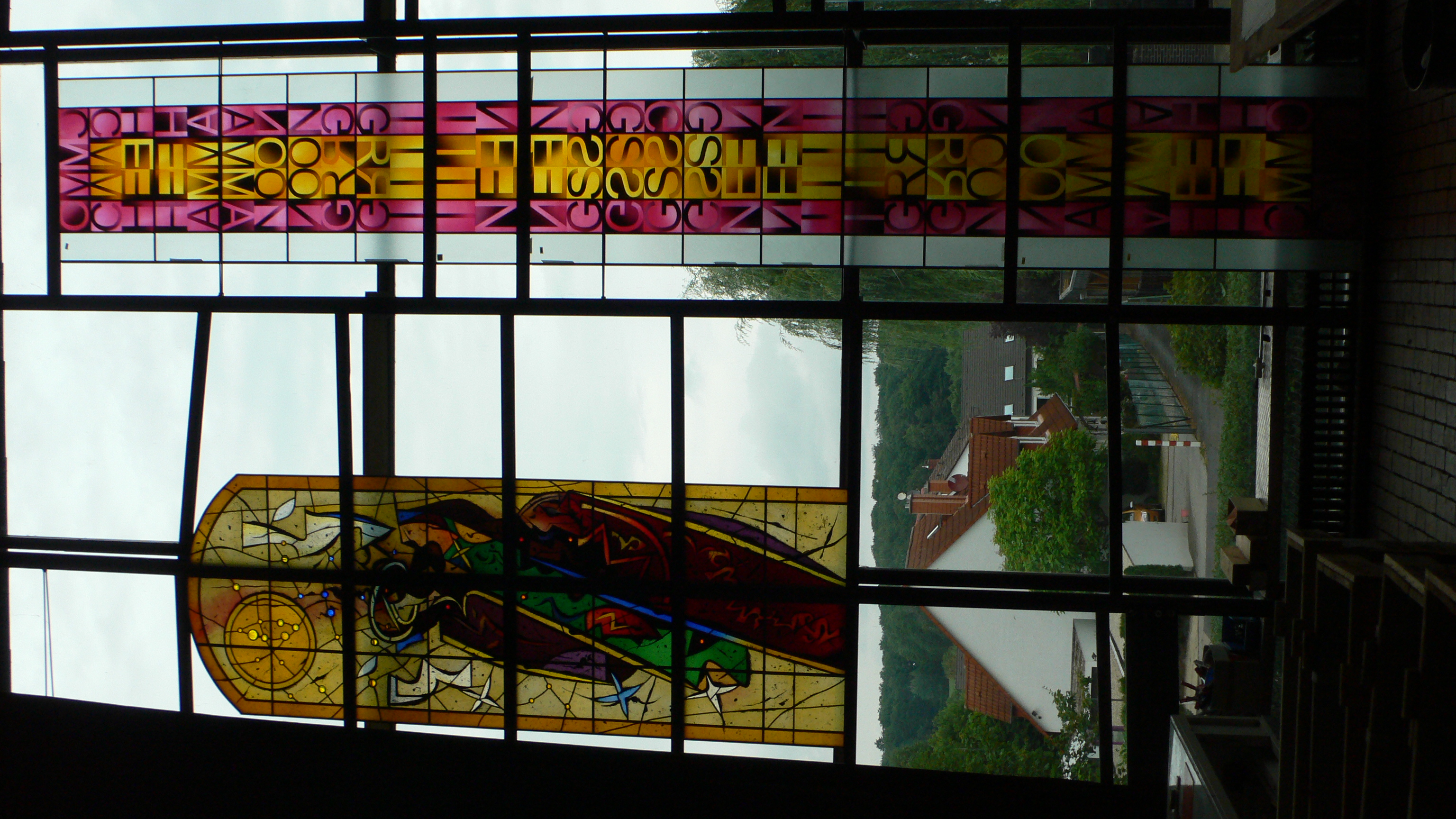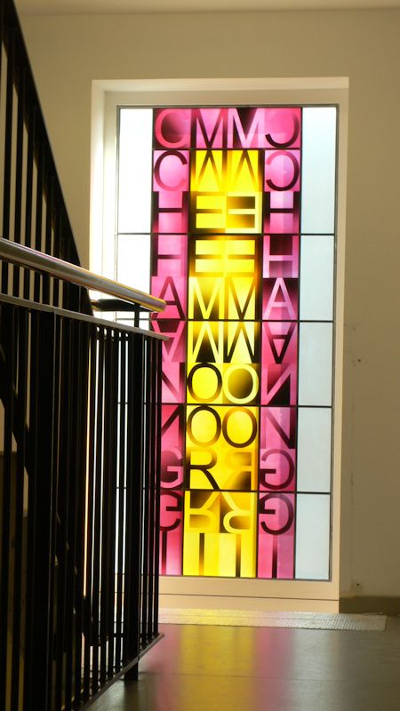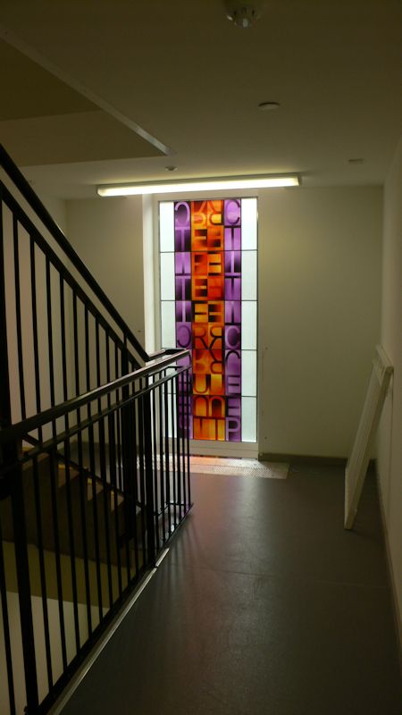 This is a beautiful and technically difficult project, but in many ways it is totally pointless. These two 6mt windows are in stairwells that no one uses. The windows can only be seen at night when illuminated from within but the building is situated in a street that is not very busy.