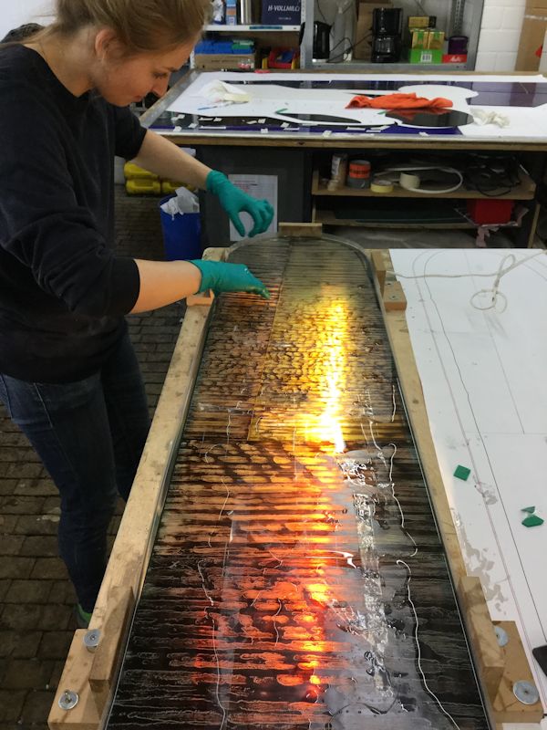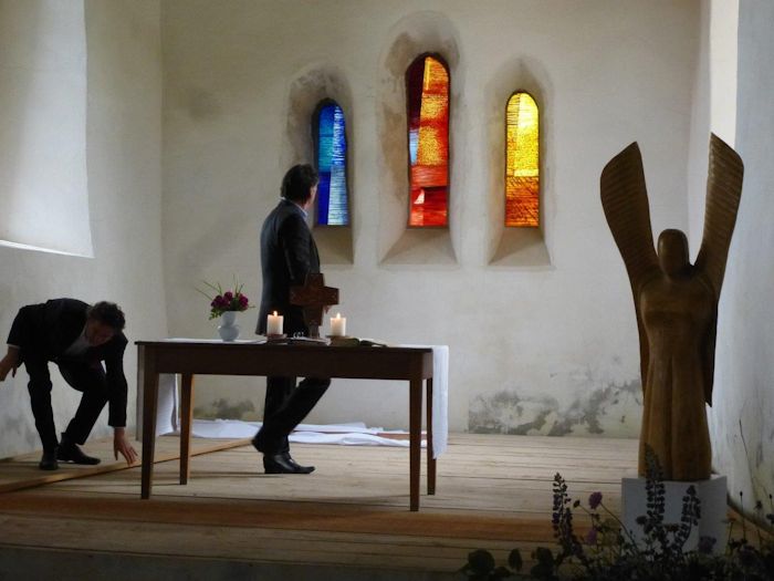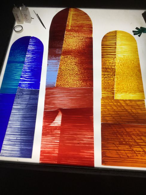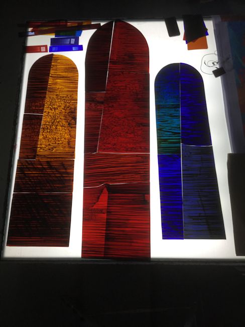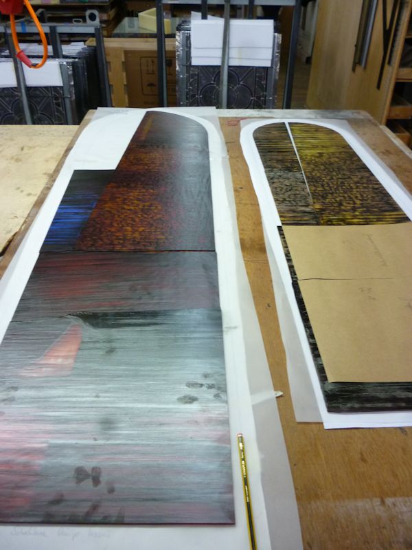 I was asked to produce designs. Herr friedrich had seem a project that I had designed for another German church and asked me to make something suitable for the church in Hermannsacker. I produced a series of designs using an abstract approach that I had developed. The concept is called "controlled spontaneity". We had a meeting in the church where we looked at the various options settling on my own preferred design.
