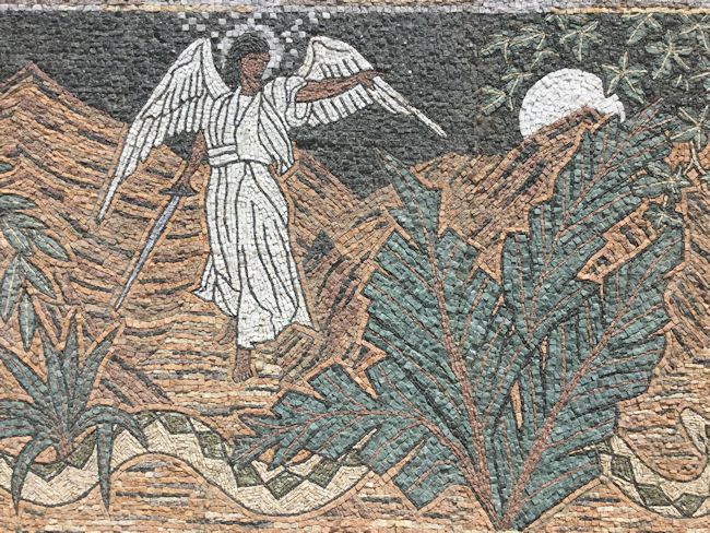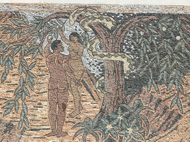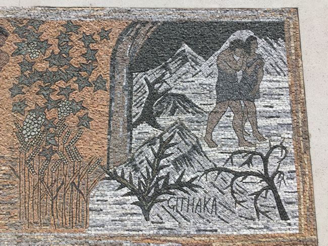This is the mosaic that was made for the Kericho Cathedral. It is on the theme of the Garden of Eden. It is made of natural stone. it is 20Mt long and 2Mt high. This extraordinary work was undertaken by with Githaka Karuri and his team.