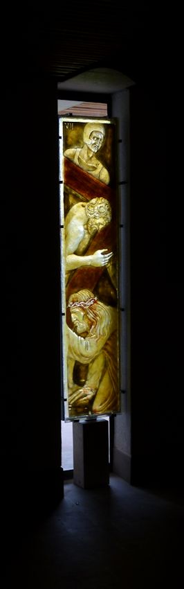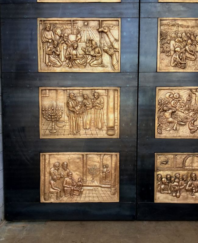 The cathedral has two sets of steel doors, there are relief sculpted bronze panels inserted into these doors. The method of creating the art work for these panels is similar to what is required to make the glass relief sculptures.