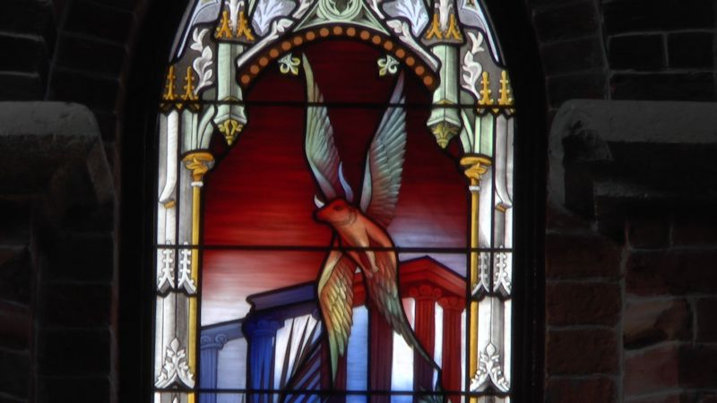 The St. Paul window shows Paul preaching. In his hand he holds the sword of his martyrdom.