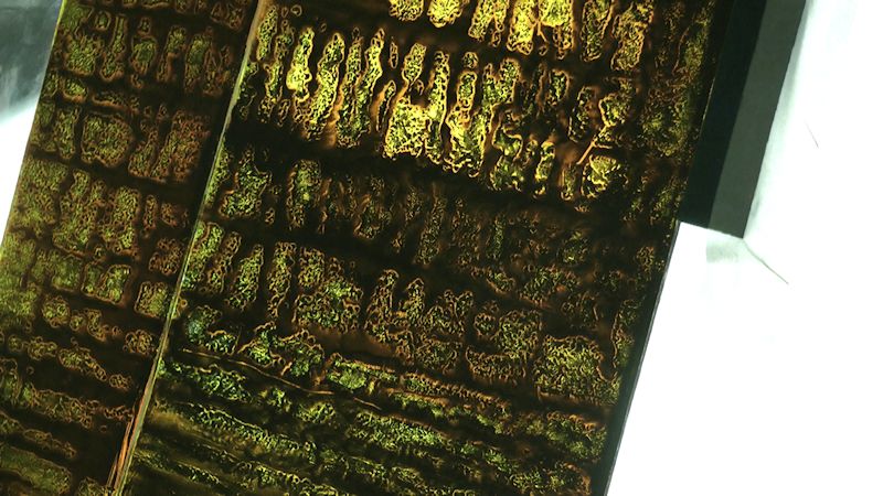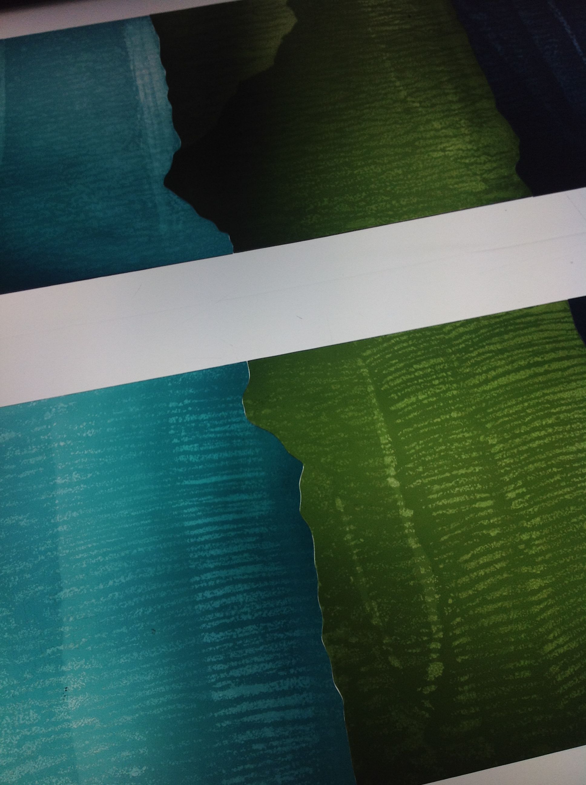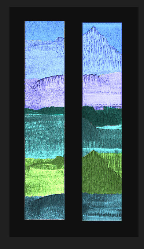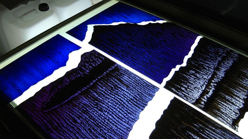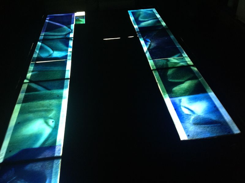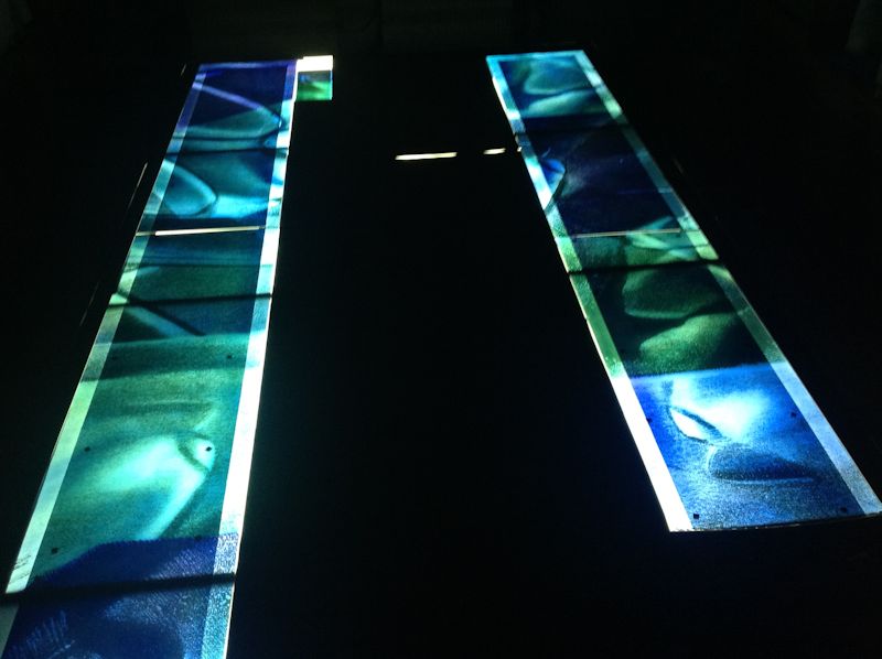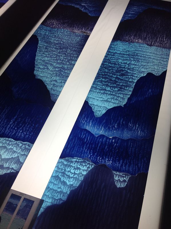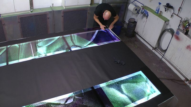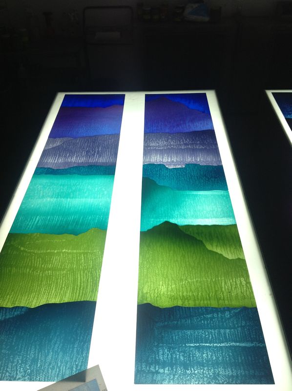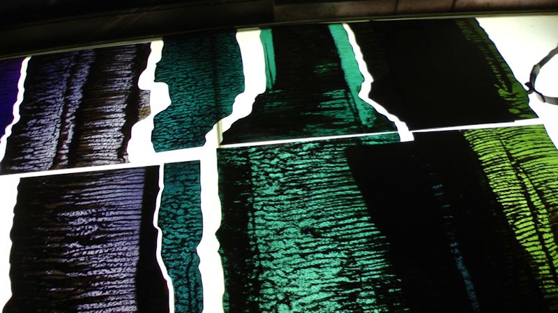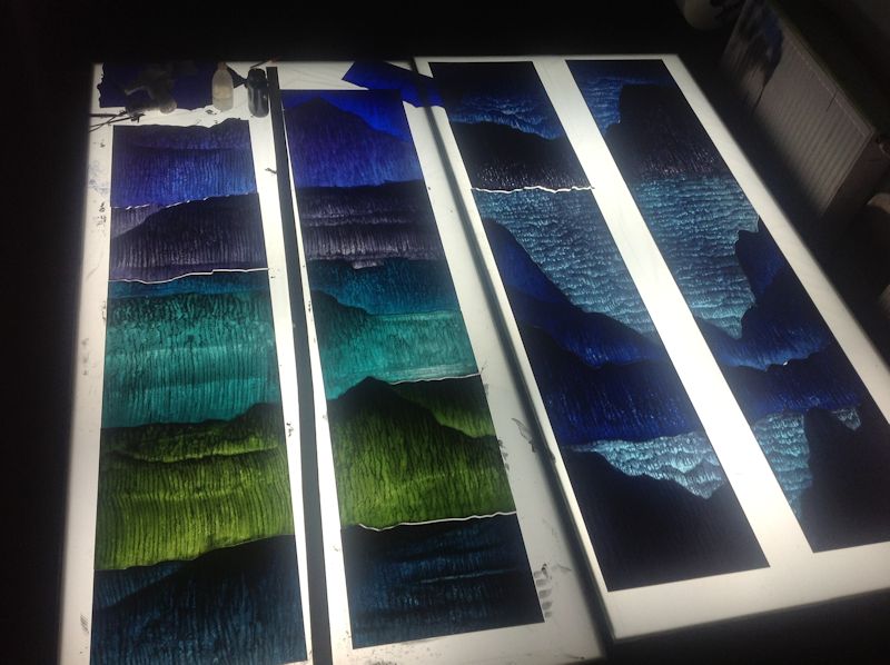 Technique - Extensively acid etched and traditional glass painting - digitally printed and spray painted (large horizontal panel)