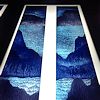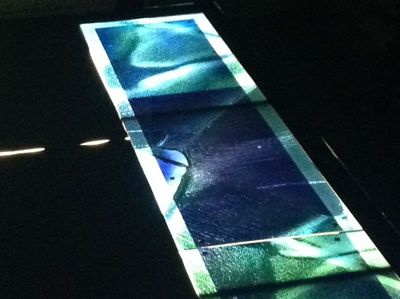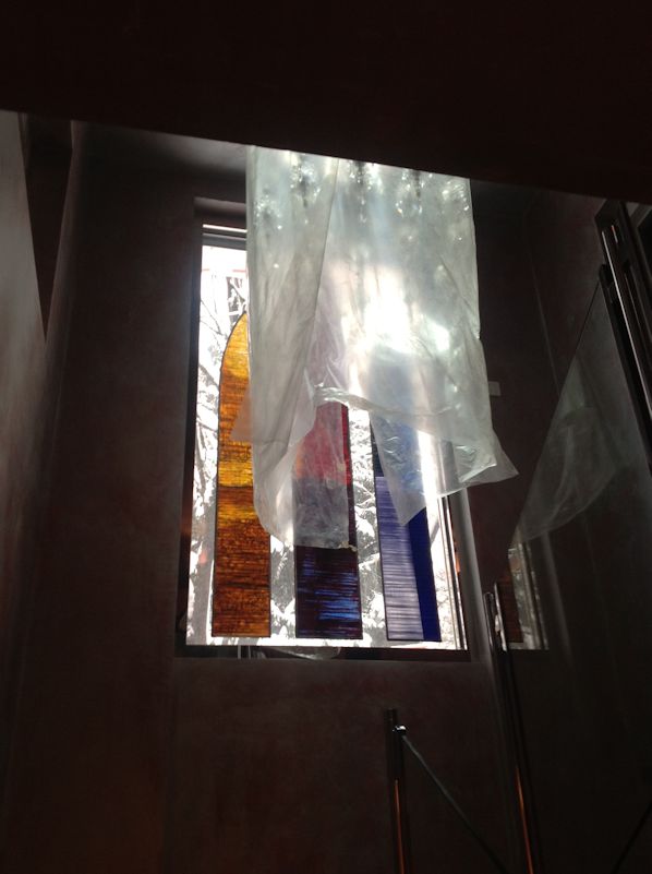 There were three sets of panels involved, only one has been sort of installed, the long horizontal piece and the other abstract landscapes are not to be seen and may have been destroyed.