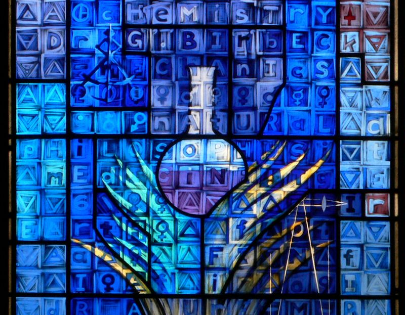This window has images and words relating to the establishment of the institution and about John Anderson the founder of Anderson's Institution.
