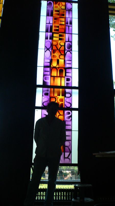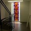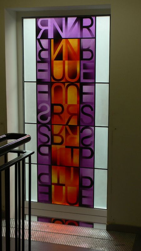 This is a beautiful and technically difficult project, but in many ways it is totally pointless. These two 6mt windows are in stairwells that no one uses. The windows can only be seen at night when illuminated from within but the building is situated in a street that is not very busy.
