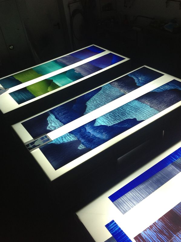 Technique - Extensively acid etched and traditional glass painting - digitally printed and spray painted (large horizontal panel)