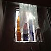 There were three sets of panels involved, only one has been sort of installed, the long horizontal piece and the other abstract landscapes are not to be seen and may have been destroyed.